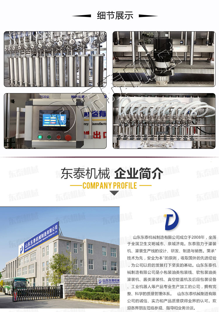 東泰機械專(zhuān)業(yè)灌裝機生產(chǎn)加工企業(yè)為您提供最優(yōu)質(zhì)的食用油灌裝機、全自動(dòng)灌裝機、(液體、膏體、辣椒醬、顆粒)灌裝機等,承接各種生產(chǎn)線(xiàn)非標定做。東泰機械,品質(zhì)卓越!