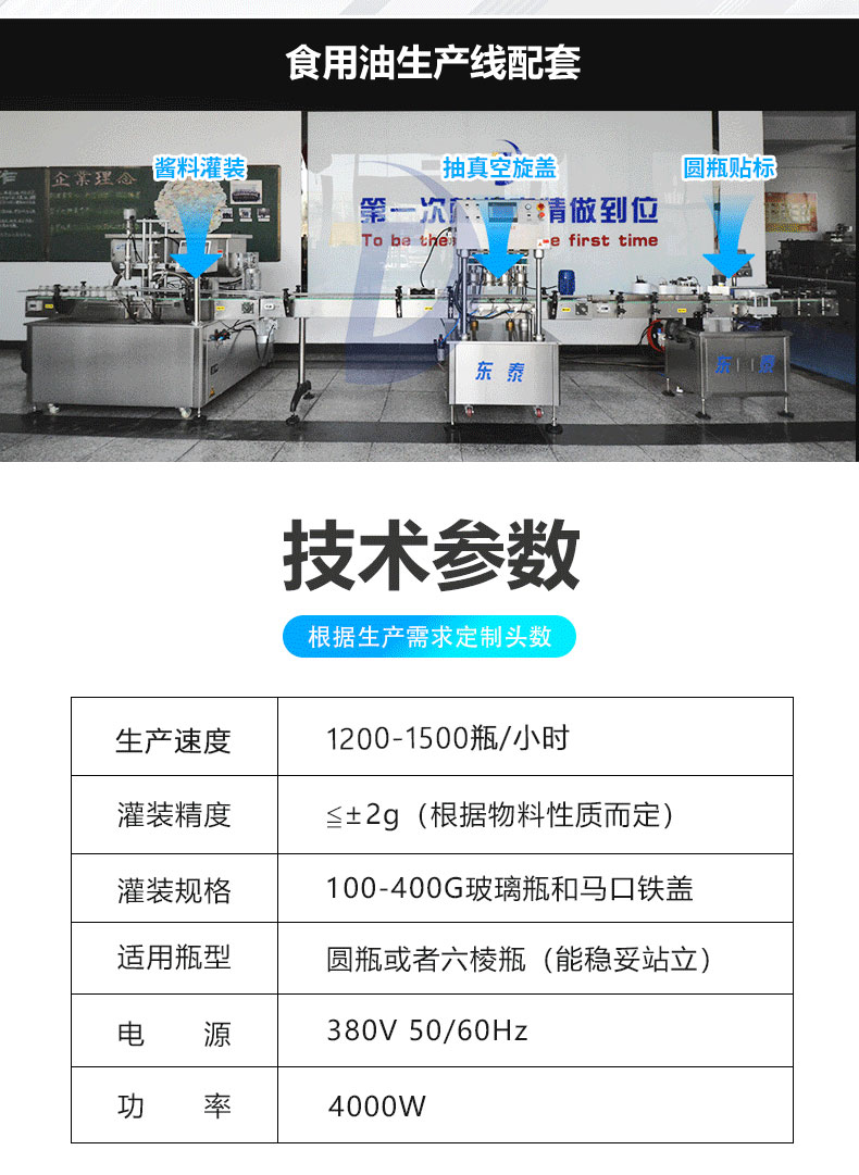 東泰機械專(zhuān)業(yè)灌裝機生產(chǎn)加工企業(yè)為您提供最優(yōu)質(zhì)的食用油灌裝機、全自動(dòng)灌裝機、(液體、膏體、辣椒醬、顆粒)灌裝機等,承接各種生產(chǎn)線(xiàn)非標定做。東泰機械,品質(zhì)卓越!